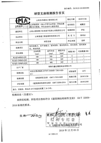 云南保山职教园区异地迁建项目减震支座试验已完成